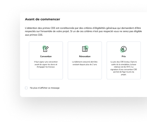 Des préconisations et informations vous sont communiquées tout au long du parcours afin de bénéficier de la prime la plus optimale.